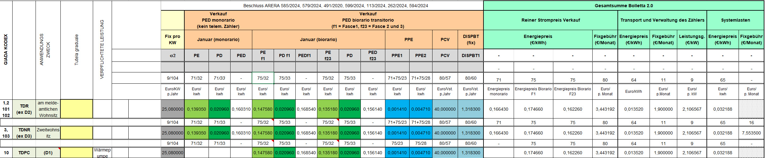 Haushaltsstrom Tarife - Tariffe A Uso domestico 01.01.25 - 31.03.25