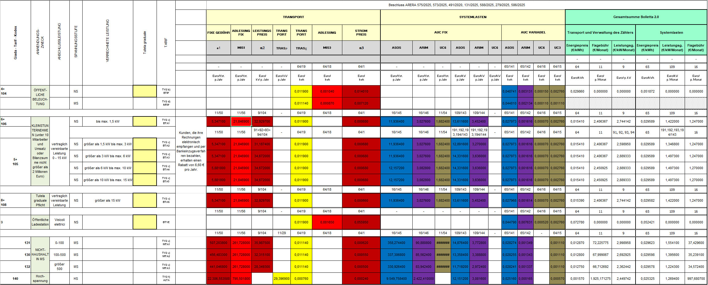Nicht-Haushaltsstrom Tarife - Tariffe A Uso non domestico